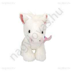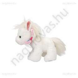 Miss Melody szuper aranyos és szuper puha fehér bújós játékának sörényében rózsaszín és fehér fonat található. A ló patája sötétszürke.