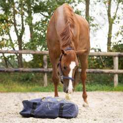 A szénapárna alkalmas ló szénával való etetésére. Lova nyugodtabban eszik, mert jobban kell erőlködnie az evéshez. Szórakoztató étkezési módot biztosít. Helyezze a szénapárnát például a karámba.