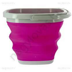Egy vödör, amelyet könnyű szállítani és tárolni! Könnyű és rugalmas, szilikonból készült, műanyag peremmel és fogantyúval, 25 cm magasra és 10 l űrtartalmúra kinyitható. Összecsukása egyszerű, így megkönnyíti a tárolást, amikor nincs használatban.