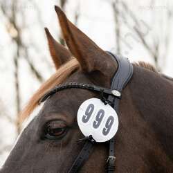 Rugalmas szalaggal ellátott számtartó, amely versenyek során a kantárra vagy a karra rögzíthető. Ez a számtartó háromjegyű számnak ad helyet.