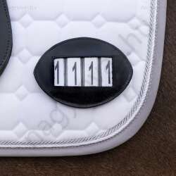 Elegáns megjelenést biztósít ez a számtartó. A tartó könnyen rögzíthető a kantárhoz vagy a nyeregalátéthez biztosítótűkkel. A cserélhető számok mellékelve vannak.
