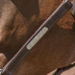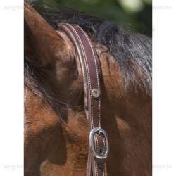 Kötőfék, állítható tarkószíj és orrszíj, párnázott és bélelt, tónusos bőrrel, fehér díszvarrással. A gyors nyitáshoz a torokszíj mindkét oldalán és a csatokon pattintós zárakkal rendelkezik.