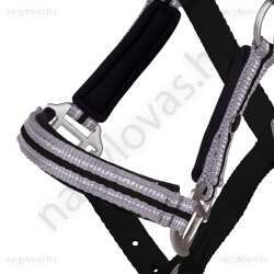 Masszív fejgallér orrpánttal, fejdísszel, homlokpánttal és kontrasztos színű pofadarabokkal. A homlokpánt biztosítja, hogy a fejrész a helyén maradjon. Ezenkívül az orrpánt, a homlokpánt és a fejgallér fejrésze állítható és puha párnázott.