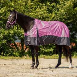 Ez a gyapjúbéléssel ellátott túratakaró a 2026-os nyári kollekcióból erős, vízálló és lélegző. Jól védi lovát az esőtől és a széltől a nyári hónapokban. A meghosszabbított elülső rész megakadályozza a mellkas tátongását, különösen a szélesebb testalkatú lovak esetében. A nyaknál lévő D-gyűrűk extra praktikussá teszik a takarót, és alkalmasak külön nyakpánt rögzítésére. Külső anyagösszetétel: 100% poliészter