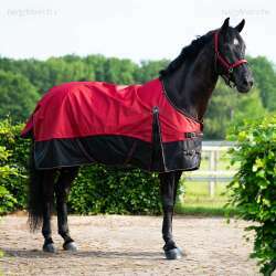 Ez a gyapjúbéléssel ellátott takaró a 2026-os nyári kollekcióból erős, vízálló és lélegző. Jól védi lovát az esőtől és a széltől a nyári hónapokban. A meghosszabbított elülső rész megakadályozza a mellkas tátongását, különösen a szélesebb testalkatú lovak esetében. A nyaknál lévő D-gyűrűk extra praktikussá teszik a takarót, és alkalmasak külön nyakpánt rögzítésére. Külső anyagösszetétel: 100% poliészter