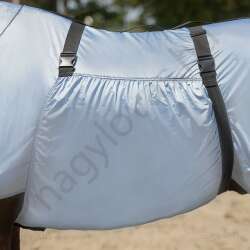 Ez az ekcéma takaró rögzített nyakrészt tartalmaz rugalmas záródással, széles hasvédőt rugalmas, állítható hevederekkel és széles farokvédőt. A takaró műanyag záródású, és az első lábak között is található egy zár a hasvédő rögzítéséhez. Kutatások bizonyították, hogy a zebra minta a csíkok fényvisszaverése miatt riasztja el a legyeket. Ez a visszaverődés irritálja a rovarokat.