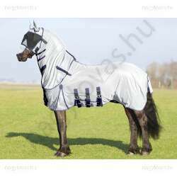 A meleg nyári hónapokban a lovakat zavarhatják a legyek, a bögölyök, a rovarok és más kellemetlen rovarok. Számos légyvédő lótakarót kínálunk, hogy megvédje lovát ezektől, például ezt a nyakkal és légymaszkkal ellátott légyvédő takarót, amely kifejezetten fríz és barokk lovak számára készült. A takaró levehető nyakkal és légymaszkkal rendelkezik, amelyeket le lehet venni, amikor a legyek és más rovarok kevésbé aktívak. A takaró hasvédővel rendelkezik, amely szépen illeszkedik a hasra, és kétszer van rögzítve tépőzárral és hevederekkel, amelyek megakadályozzák az elmozdulását. Ez a takaró szélesebb a nyaknál és a mellkasnál, mint a hagyományos takaróké.