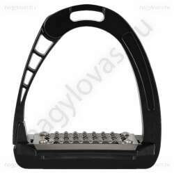 Biztonsági kengyel. A külső kengyelkar (könnyen visszazárható) esés közben kinyílik, megakadályozva a lovas lábfejének beakadását a kengyelbe.