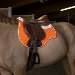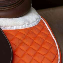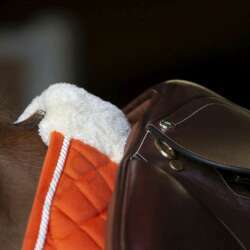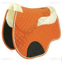 100% poliészterből készült nyeregalátét, beépített szintetikus báránybőr párnázattal. Szintetikus báránybőr hátul a ló és a lovas fokozott kényelme érdekében.