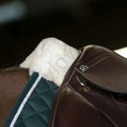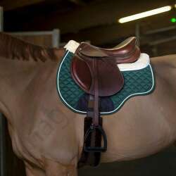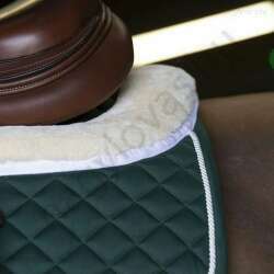 100% poliészterből készült nyeregalátét, beépített szintetikus báránybőr párnázattal. Szintetikus báránybőr hátul a ló és a lovas fokozott kényelme érdekében.