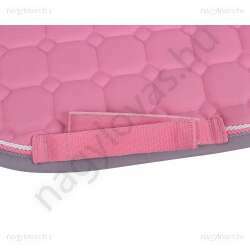 Elegáns nyeregvédő két díszzsinórral, színes szegéllyel és anatómiailag formázott hátrésszel. A nyeregvédő hevederhurkokkal és tépőzáras rövid hurkokkal rendelkezik, hogy a nyeregvédő a helyén maradjon. A hátoldalon található QHP hímzés teszi teljessé a megjelenést.