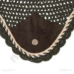 A horgolt sapka elasztán fülekkel rendelkezik, így nagyon kényelmes viselet. A fülvédő szélén húzódó csillogó szegély csík teszi teljessé.