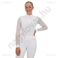 A téli kollekcióból származó hosszú ujjú Sennah versenypóló rugalmas, hálós anyagból készült, strasszokkal díszített ujjakkal rendelkezik. A rugalmas anyagnak köszönhetően nagyszerű viseleti kényelmet biztosít, valamint rejtett cipzárral és Q-tűvel rendelkezik a bal mellkason.