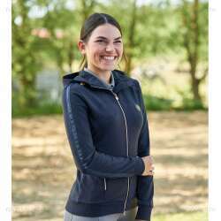 Lovagoljon és dolgozzon kényelmesen az istállóban a légáteresztős kapucnis pulóverben. Puha pamutból és rugalmas anyagból készült a könnyű mozgás érdekében, és cipzáras elülső zsebekkel, hogy kéznél tartsa a legfontosabb dolgokat. Stílusos kiegészítője a lovas gardróbjának.