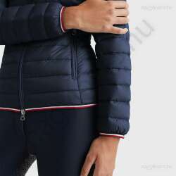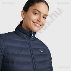 Könnyű pehelykabát kétirányú elülső cipzárral, Re:Down - 100%-ban újrahasznosított pehellyel és tollakkal töltve. Vízlepergető külső anyag, 2 cipzáros zseb az oldalán és 2 belső zseb. A mandzsetta és a szegély gumiszalaggal van szegélyezve, a jellegzetes Tommy színekben. Szilikon logós kitűző a bal mellkason. GRS (Global Recycled Standard) tanúsítvánnyal rendelkezik.