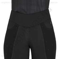 A téli kollekció Zahra lovaglóharisnyái 4 irányban rugalmas anyagból készültek, puha, bolyhozott belső résszel az optimális kényelem és melegség érdekében. Magas derekuknak és rugalmas derekuknak köszönhetően ezek a harisnyák tökéletesen illeszkednek. A közepes méretű szárrész dekoratív mintázattal rendelkezik, a mindkét combon található zsebek pedig áttetsző anyaggal és strasszokkal vannak kidolgozva. A bal oldalon található QHP logó teszi teljessé a Zahra lovaglóharisnyát.