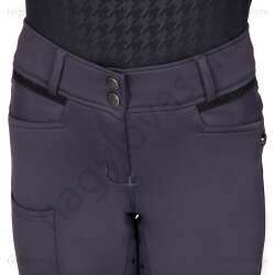 Ez a lovaglónadrág minden évszakban alkalmas, és kiválóan rugalmas. A nadrág dekoratív szilikon teljes fogású mintázattal rendelkezik. A hátsó zsebek csillogó szegélye elegáns megjelenést kölcsönöz a nadrágnak. A telefont könnyedén elteheti a jobb felső száron található erre a célra kialakított zsebbe.