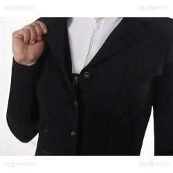 Ragyogj verseny közben ebben az elegáns versenyzakóban! A zakó rejtett cipzárral rendelkezik a gombos záródás mögött, így a gombok nem húzódnak. A rugalmas, lélegző anyag kényelmes viseletet biztosít, és vízlepergető is. A cipzáras zsebeken és a fekete műcipzáras zseben lévő csillámos szalag teszi teljessé a zakót