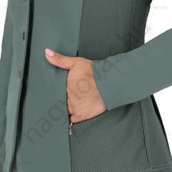 Sportos versenyzakó hálós anyaggal az oldalán, az ujjak alatt, a hátulján és a galléron. A hálós anyag nagyon lélegzővé teszi a kabátot, és tökéletes nyári viseletre. A kabát rejtett cipzárral rendelkezik a gombos záródás mögött, és két rejtett cipzáras zsebbel az elején.