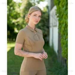 Testhezálló, könnyű, rövid ujjú póló mindennapi viselethez. Rugalmas anyagból készült a mozgás szabadsága érdekében, oldalt pedig hálós betétekkel a jobb szellőzés érdekében. A légáteresztő és nedvességelvezető anyag hűvösen és szárazon tartja Önt lovaglás közben és az istállóban végzett munka során.