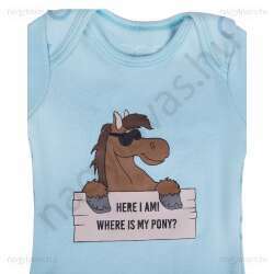 Milyen szupercuki ez a babaruha? Az elején a következő felirat látható: "Itt vagyok! Hol van a pónim?". A hátulját patkók díszítik. Ezzel a ruhával megtetted az első lépést afelé, hogy pónirajongó legyél!