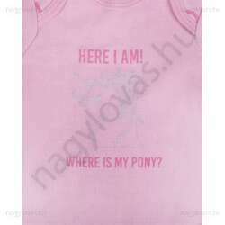 Szupercuki babaruha. Elöl a következő felirat: "Itt vagyok! Hol van a pónim?", hátul pedig patkók díszítik. Ez a ruha az első lépés afelé, hogy pónikedvelővé válj!