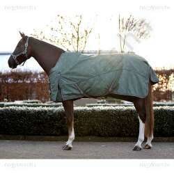 Erős, vízálló és légáteresztő esőtakaró gyapjú béléssel, amely melegen tartja a lovat szélben és alacsonyabb hőmérsékleten. A szőnyeg a mellkason állítható illeszkedéssel rendelkezik, így nem nyílik ki, ha a lónak szélesebb a mellkasa. A laza nyak a nyaknál lévő D-gyűrűkhöz rögzíthető.