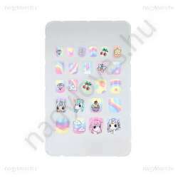 Az aranyos motívumokkal, részben csillámos öntapadó műkörmök nagyon könnyen felhordhatóak, és ugyanolyan könnyen eltávolíthatók vízzel.