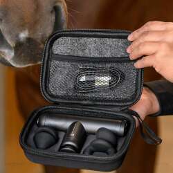 Ez a praktikus masszázskészülék kifejezetten lovakon való használatra lett kifejlesztve. 4 cserélhető szilikon tartozékkal és 5 egyedileg választható rezgési szinttel (1800/2100/2400/2700/3000 fordulat/perc) a masszázs optimálisan igazítható a különböző izomterületekhez és érzékenységekhez. Segít gyengéden oldani a feszültséget, elősegíti a vérkeringést és növeli a ló általános közérzetét. Mindössze 255 g súlyával a készülék különösen könnyű. Ideális mindennapi használatra istállóban vagy versenyeken. A masszázsfej tartója rugalmasan kombinálható minden tartozékkal.