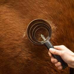 Ez a spirális körfém vakaró ideális a kihullott szőr és szennyeződés eltávolítására. Vastag téli szőrű lovak számára és nyeregpárnákról való szőr eltávolítására is alkalmas.