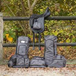 Ez a téli kollekcióból származó kantártartó táska tisztán és rendben tartja a kantárt. Belül egy csattal ellátott pánt található, amely a fejrészhez rögzíthető. Elöl fogantyúval és cipzárral is rendelkezik.
