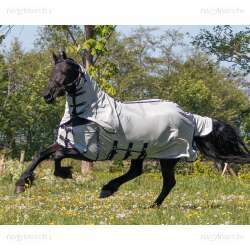 A nyári hónapokban sok ló legyektől, bögölyöktől, szúnyogoktól és más bosszantó rovaroktól szenved. Hogy megvédje lovát ezektől, különféle légytakarókat kínálunk. Ez a kifejezetten fríz és barokk lovak számára tervezett légytakaró levehető fej- és nyakrésszel rendelkezik, így könnyen eltávolítható, amikor a rovarok kevésbé aktívak. A takarónak egy nagy hasvédője van, amely az egész hasat körbeöleli, biztosítva, hogy a takaró tökéletesen illeszkedjen és a helyén maradjon. A takaró szélesebb a nyaknál és a mellkasnál, mint más takaróké.