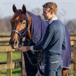 Extra puha polár anyagból készült a magas viselési kényelem érdekében. A kétszínű dekoratív zsinór és a "Lovas sport" nyomat kiegészíti az elegáns megjelenést. Anyagösszetétel: 100 % poliészter. Hosszabbított nyakkal, elöl dupla csattal. A nyak tépőzárral zárható. Fekete fém szerelvények. Levehető keresztpánttal és farokkötővel.
