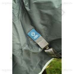 Vízálló és légáteresztő pólyaszőnyeg 600 Den Ripstop újrahasznosított poliészterből, ragasztott varratokkal. Nylon béléssel. Rendelkezik egy nagyon nagy vízálló faroklebennyel, szintetikus báránybőr párnázással a combnál, alacsony keresztbe fűzött surcinggel és állítható hátsó hevederrel. Gyorsan kioldható rögzítés a mellkason, öntapadó pántokkal megerősítve.