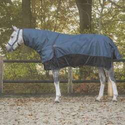 Tartós téli takaró 150 grammos töltettel. A takaró speciális illeszkedése elöl megakadályozza a nyílások kialakulását a szélesebb mellkasú lovakon. A takaró vízálló és lélegző. A nyakrész könnyen rögzíthető a három D-gyűrű segítségével található kapcsokkal.
