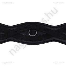 Finom fekete díjlovagló heveder tartós anyagból. Anatómiailag formázott heveder nagyobb kényelmet és mozgásszabadságot biztosít. A heveder közepén egy gyűrű található az oldalsó szár rögzítéséhez.