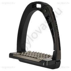 Biztonsági kengyel. A külső kengyelkar (könnyen visszazárható) esés közben kinyílik, megakadályozva a lovas lábfejének beakadását a kengyelbe.