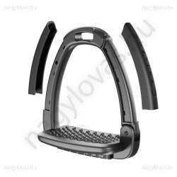 A kiváló minőségű anyagokból készült POLY TECH kengyelt úgy tervezték, hogy biztosítsa a kényelmet és a biztonságot. A gyönyörű, fémes színű cserélhető oldalelemeken kívül a kengyel egy oldalsó karral rendelkezik, amely 90°-ban nyitható, és esés esetén a láb kioldására szolgál. A kengyel klasszikus felfüggesztése természetes lábhelyzetet tesz lehetővé. Az anatómiailag kialakított, 5°-os dőlésszögű futófelület segít lefelé tartani a sarkokat, ergonomikus formája pedig elősegíti a lábfej automatikus pozícionálását a kengyel közepén. A perforált szerkezet a 3D tüskékkel kombinálva optimális fogást és gyors nedvesség- és szennyeződéseltávolítást garantál.