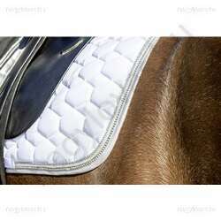 A Crystal Fashion nyeregbetét egy divatos nyeregbetét, szemet gyönyörködtető foltvarrással, dupla zsinórral és ezüst szegéllyel. A nyeregpárna anatómiailag formázott és lágyan párnázott. Az anyag gyorsan felszívja a nedvességet és elvezeti. A tépőzáras hurkok biztonságos tartást biztosítanak a ló hátán.