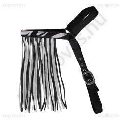 A rojtok távol tartják a legyeket a ló fejétől. Ez a légyvédő maszk kötőfék nélkül is viselhető az egyedi csatos rögzítésnek köszönhetően.