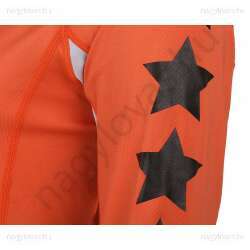 Ez a sportpóló tökéletes viselet edzés vagy verseny közben a nagyon légáteresztő anyagnak köszönhetően. A felső karokat kontrasztos színű csillagminta díszíti. A pólót a cipzár mögött egy vidám "Just get over it" felirat díszíti.