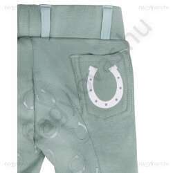 Milyen édes! Ez a Bobby lovaglónadrág a legkisebbeknek készült. Az imádnivaló lovaglónadrág bal felső szárán az "Equestrian Sports" felirat látható. A nadrág teljes fogású, patkó alakú mintázattal rendelkezik.