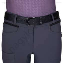 Ez a lovaglónadrág minden évszakban alkalmas és kiválóan rugalmas. A nadrág dekoratív szilikon teljes fogású mintázattal rendelkezik. A hátsó zsebek csillogó szegélye elegáns megjelenést kölcsönöz a nadrágnak. A telefont könnyedén elteheti a jobb felső száron található erre a célra kialakított zsebbe.