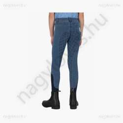 Ez a farmer lovaglóleggings puha, rugalmas anyagból készült, és kényelmes viseletet biztosít lovaglás közben. A hátsó zseben található mosolygós folt játékos részletet kölcsönöz. A teljes fogású ülép apró mosolygós mintákkal van ellátva, és jó fogást biztosít a nyeregben. A jobb száron található egy zseb, amely például egy telefonnak is elfér. A zseb széle csillámos anyaggal van ellátva. A leggings rugalmas szárvégekkel és övbújtatós derékpánttal rendelkezik.