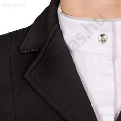 Az Izebel versenydzseki légáteresztő, 4 irányban rugalmas anyagból készült. A gallér és a zsebek csillámos szegéllyel rendelkeznek. A versenydzseki gombjai csillámosak.