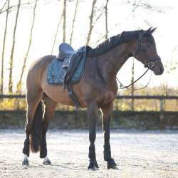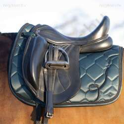 A Fenna nyeregalátét anatómiai formájú és elegáns megjelenésű. Csillogó díszzsinór és a hímzés. Hevederhurokkal és rövid nyereghurokkal rendelkezik.